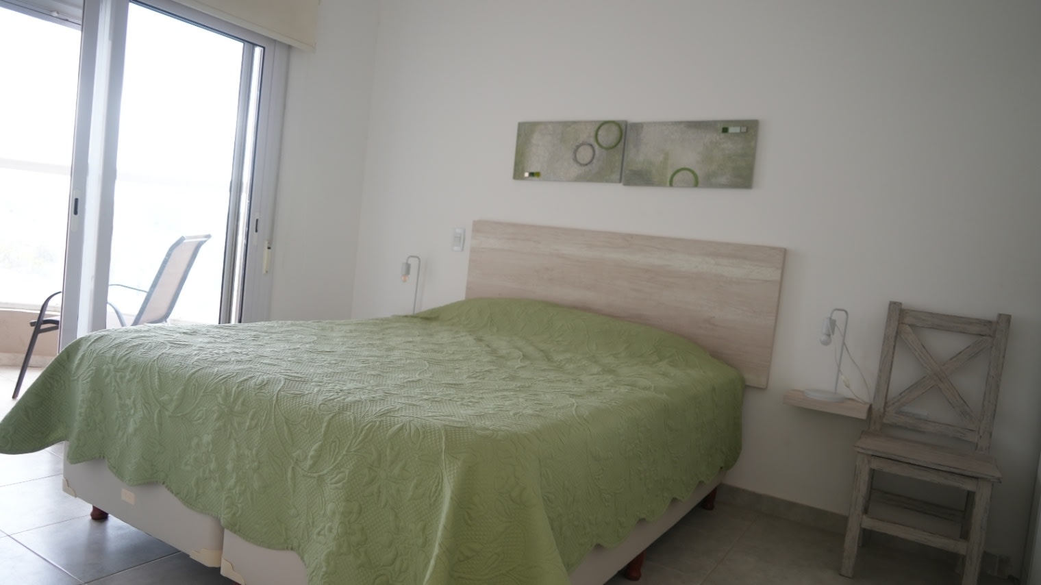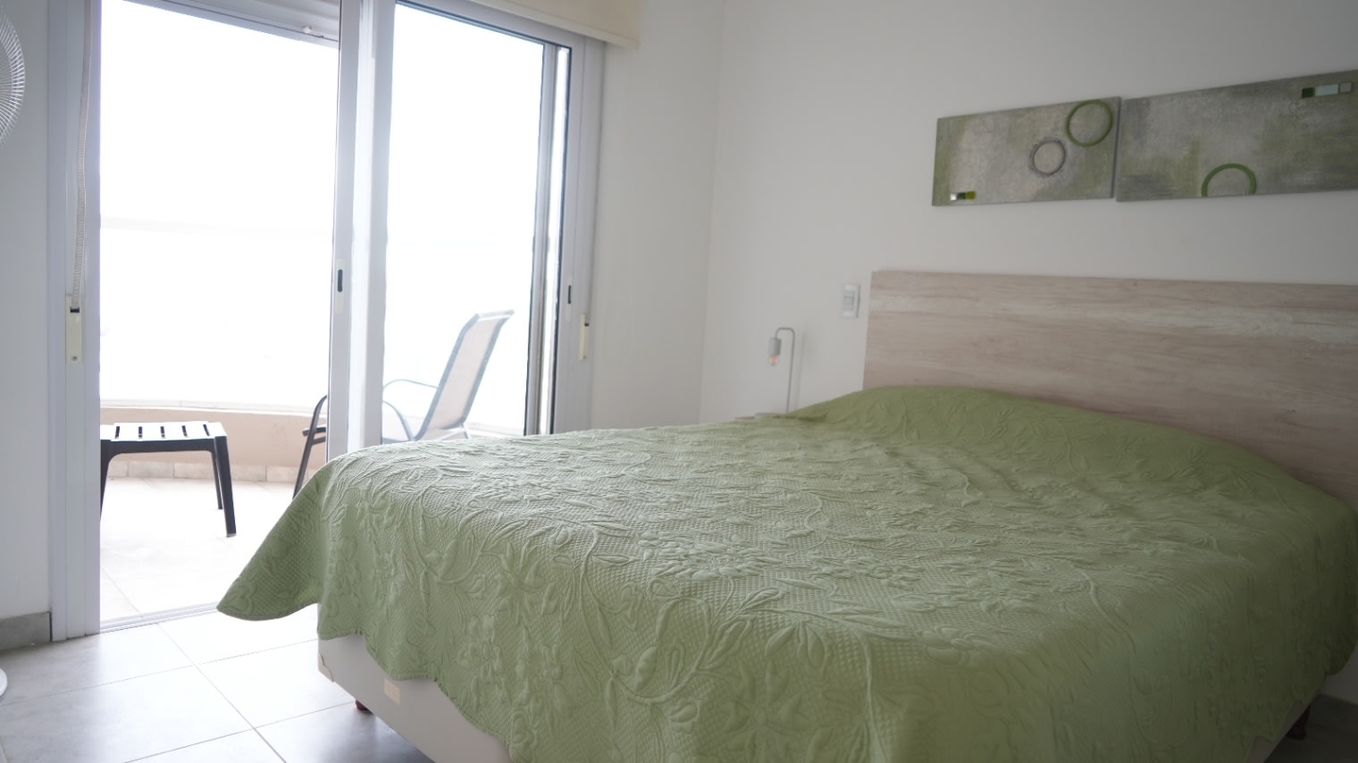 Un dormitorio con placard y salida a amplio balcón al contrafrente